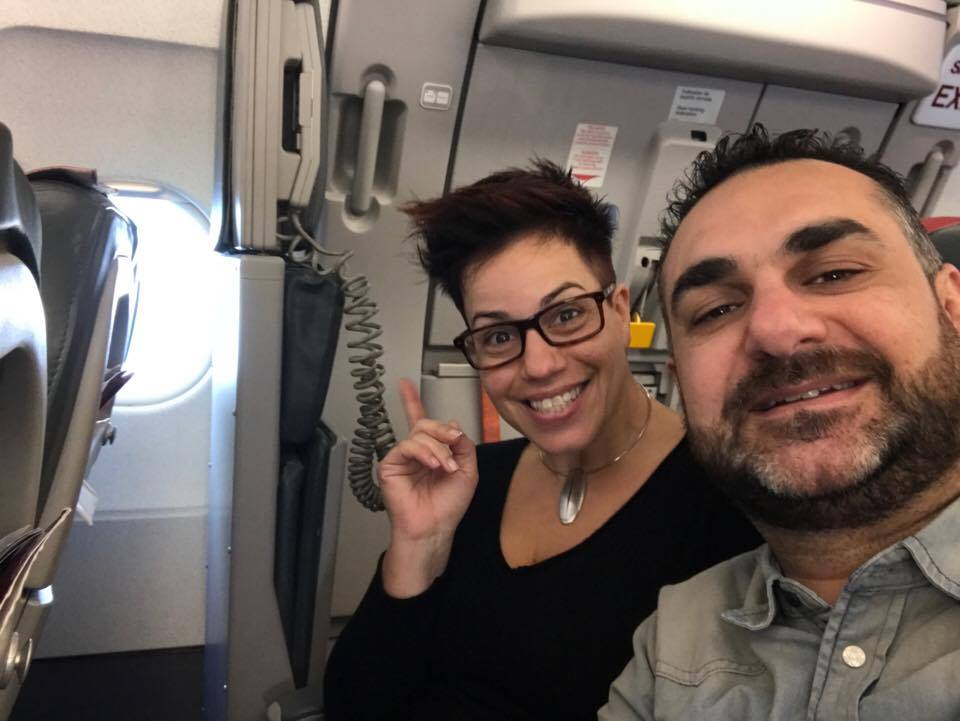 Una volta entrati nell'aereo scopriamo che i nostri posti erano all'ultima fila, la nostra reazione? vedi la foto... anche perchè ai nostri due lati non c'erano posti a sedere, bensi... wc! :-))))) Viaggio tutto sommato tranquillo anche se spesso ci trovavamo in mezzo a turbolenze :-/. Saranno state le gocce ai fiori di bach o la stanchezza, ma a parte un pò di emicrania, sono stata abbastanza tranquilla.